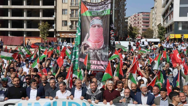 Elazığ'da El-Aksa Platformu tarafından İsrail'in saldırılarını protesto etmek amacıyla Gazze Kararlılık Yürüyüşü ve Aksa Tufanı Mitingi düzenlendi.
