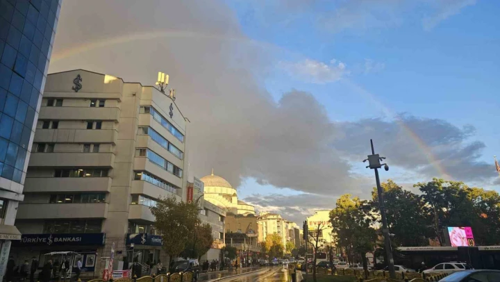 Elazığ'da etkili olan sağanak yağış sonrası oluşan gökkuşağı görsel şölen oluşturdu.