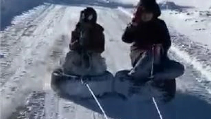 Elazığ'da otomobil lastiklerine ip bağlanarak araçla çekildi. Lastiklerin üzerine oturan 2 çocuk ise karda kaymanın keyfini çıkardı. Soğuk havaya aldırış etmeyen çocukların neşeli halleri çevredeki vatandaşların da dikkatini çekti. Karla kaplanan yolda güvenli bir şekilde kaydırılan lastik, adeta doğal bir kızak görevi gördü. O anlar cep telefonu kamerasıyla kaydedilirken, çocukların mutluluğu görüntülere yansıdı.