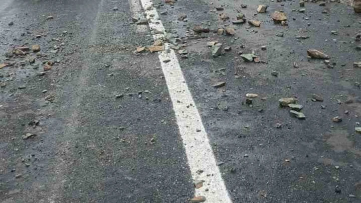 Yağış sonrası yola, taş ve kaya parçaları düştü