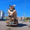 Beton mikserinin yola çimento dökerek ilerlediği anlar kamerada