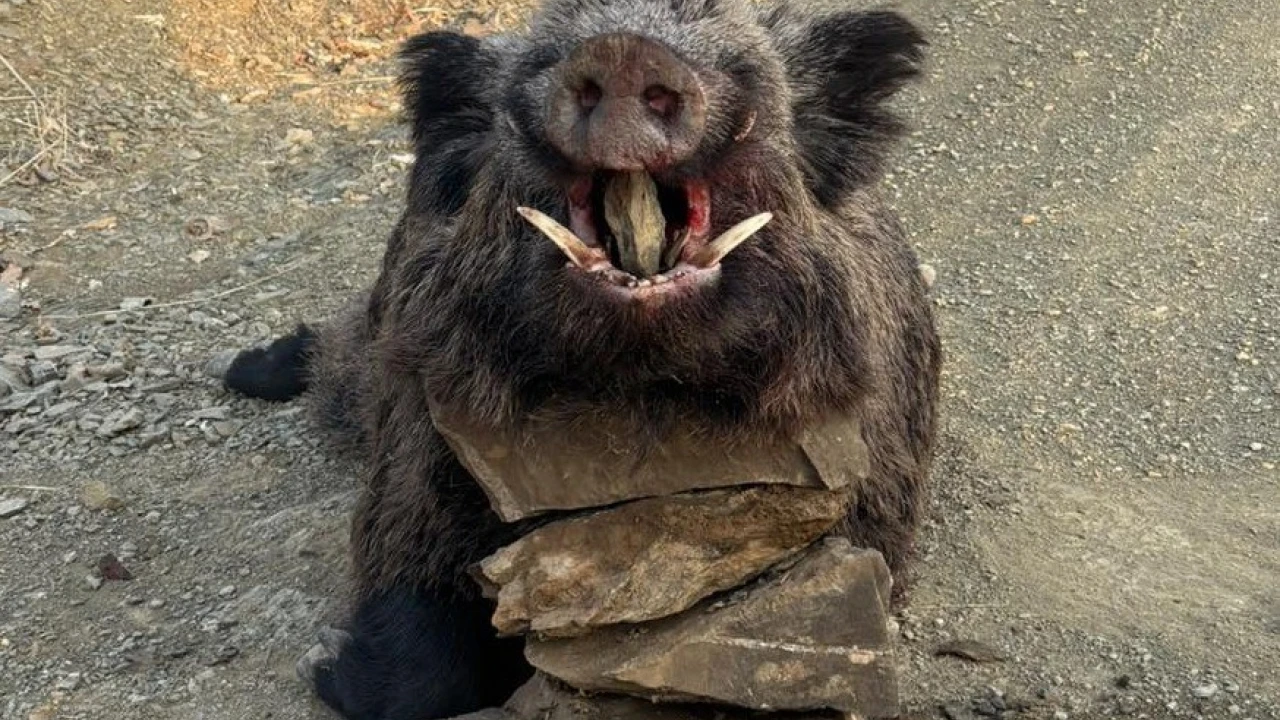 Av turizmi kapsamında yurtdışından gelen yabancı avcılar, Elazığ’da dağlık alanlarda 200 kilo ağırlığında yaban domuzu avladı.
