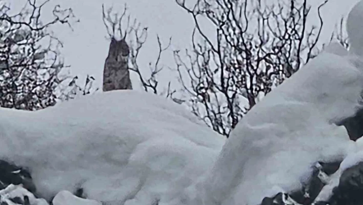 Elazığ'ın Karakoçan ilçesinde vaşak, karla kaplı dağlık alanda görüntülendi.