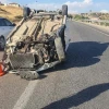 Elazığ’ın Kovancılar ilçesinde sürücüsünün direksiyon hakimiyetini kaybettiği otomobil, refüje çarparak takla attı. Kazada maddi hasar meydana geldi.