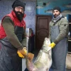 Elazığ'da yakalanan 78 kilogram ağırlığındaki turna balığını iki kişi zor taşıdı