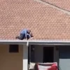Fırtınalı havada çatıda tehlikeli çalışma yürekleri ağza getirdi