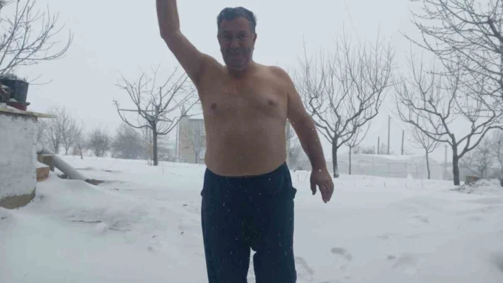 Olay, merkeze bağlı Beyyurdu Mahallesi’nde yaşandı. Edinilen bilgiye göre, mahalle sakinlerinden İlhami Çelik, sabah saatlerinde başlayan ve kent genelinde halen etkisini sürdüren kar yağışını üstsüz sokağa çıkarak kutladı. Vücudunun bazı kısımlarını yağan karla ıslatan vatandaş, o anları da cep telefonu kamerası ile kayda aldırdı.