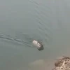 Sarp kayalıkların ustası baraj gölünde yüzerken görüldü